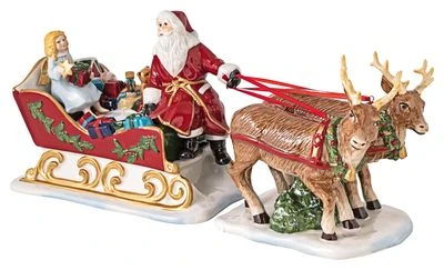 De collectie Christmas Toys van Villeroy & Boch combineert nostalgische momenten en modern design in een feestelijk sprookjesland waar kerstmarkten, sneeuwmannen en de Kerstman wachten. Ideaal als aanvulling op je feestelijke woning, om te verzamelen, te combineren en cadeau te geven. De Kerstman heeft de rendieren gespannen en ruimte overgelaten voor een theelichtje in zijn slee.